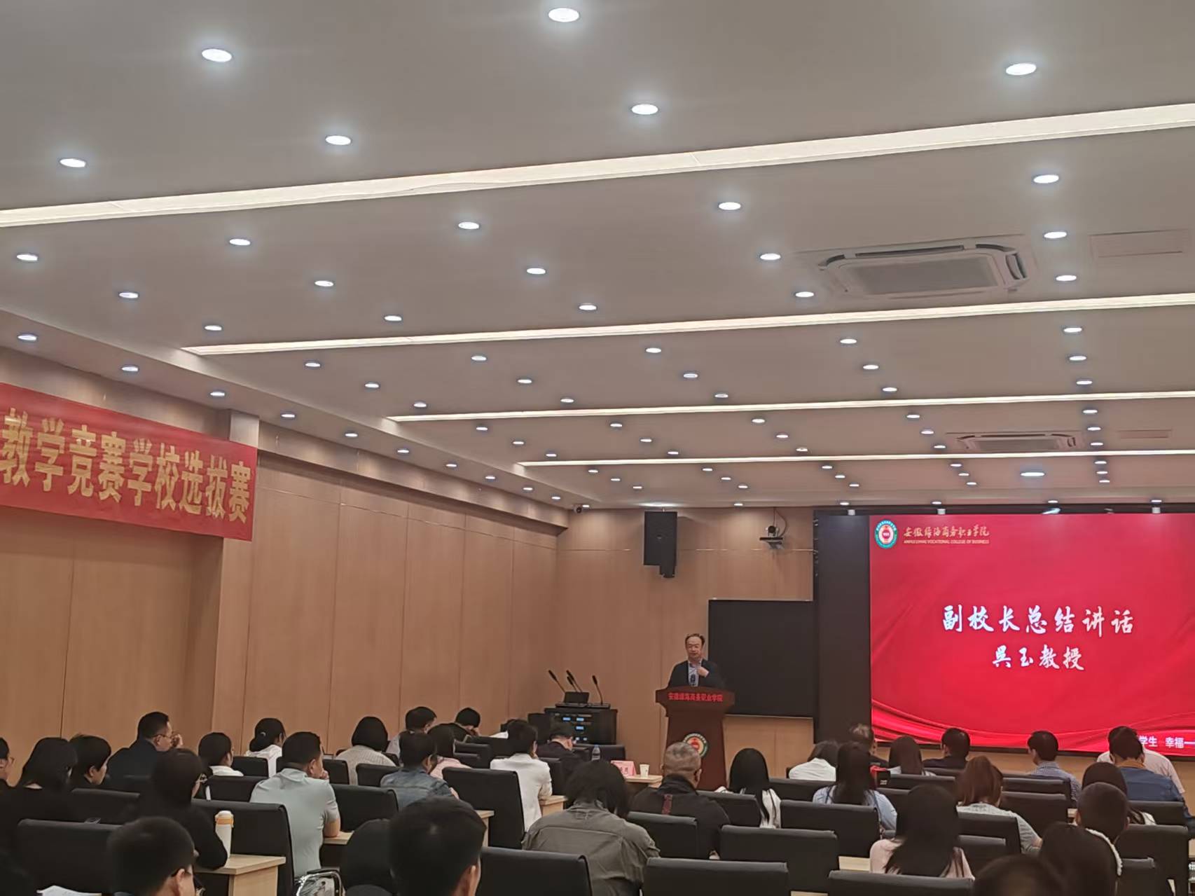 比赛结束后,党委委员、纪委副书记、工会主席周宗斌从教学目标、教学内容、教学方法、教学素养等多个维度,对参赛教师的表现进行了全面、细致的点评。副校长吴玉全程观摩并作总结发言。他强调,教学竞赛既是教师成长的“练兵场”,更是教育创新的“风向标”。希望以赛促教、以赛促改,让每堂课都成为精品。同时,他也希望获奖教师能够发挥示范引领作用,带动更多青年教师共同成长进步。