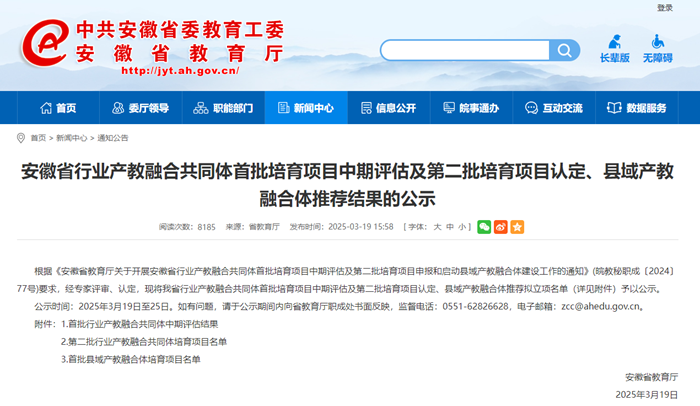 2025年3月31日,安徽省教育厅批复同意《长三角数字创意与3D打印行业产教融合共同体》立项建设(皖教秘职成〔2025〕19 号),标志着365集团的职业教育基本功能已行业化、社会化和职业化,在增强职业教育核心功能、管理功能和服务功能上百尺竿头,另立新篇章。