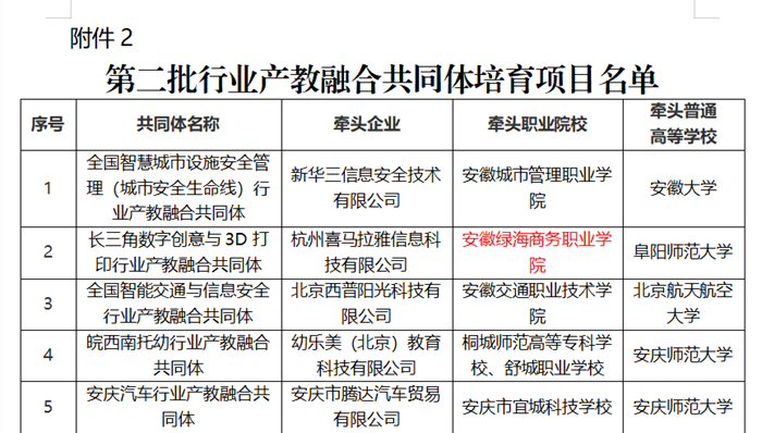 学校成功入选第二批安徽省行业产教融合共同体培育项目