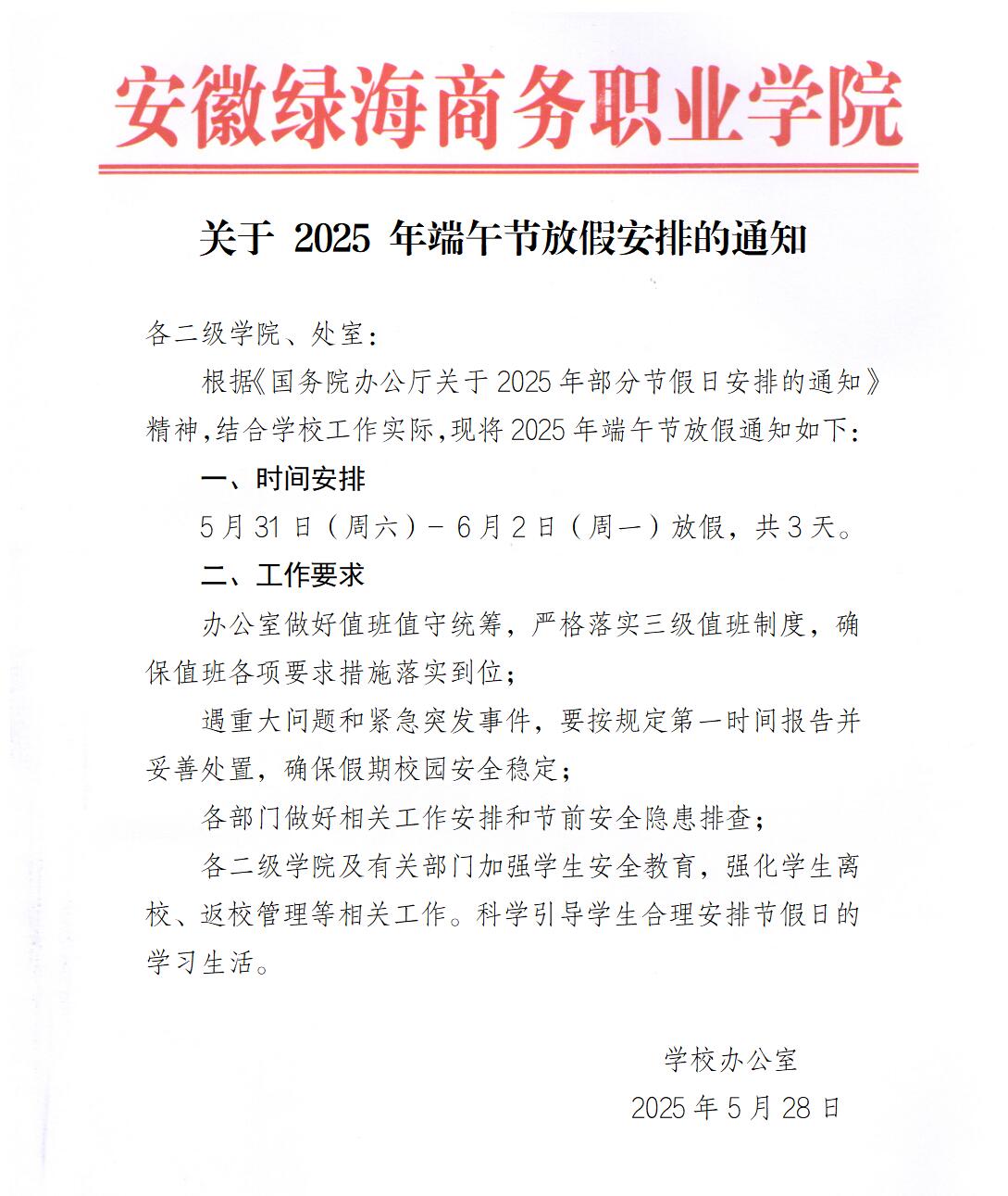 2025年端午节假期值班表