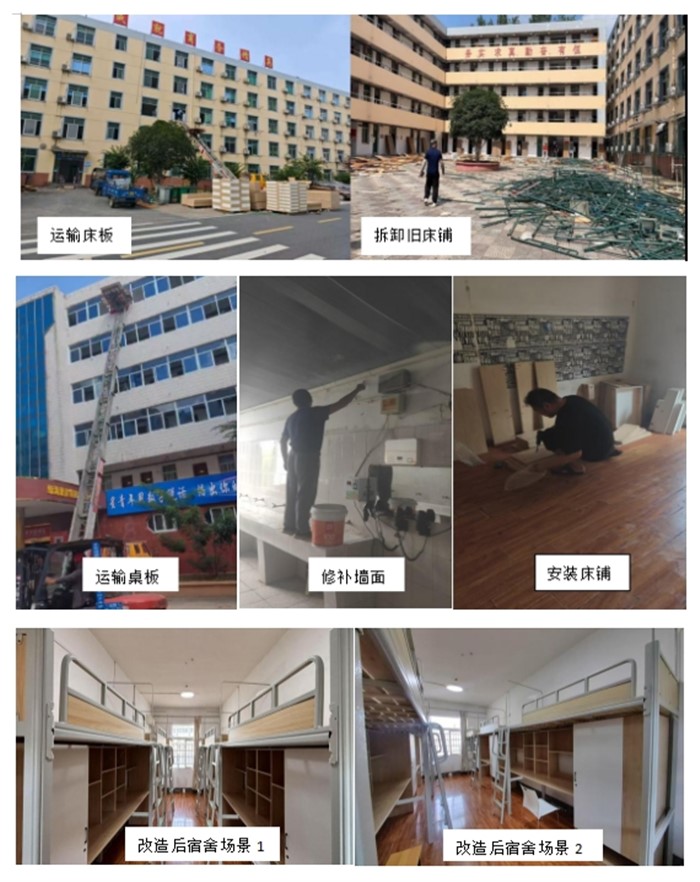 “墙面要粉刷均匀,地面要清扫干净,床铺螺丝必须逐个检查!”暑期伊始,总务处便启动了学生宿舍全面改造工程,利用暑假空档期完成新生宿舍的墙面粉刷、床铺更换及电路检修,让大一新生宿舍焕然一新。