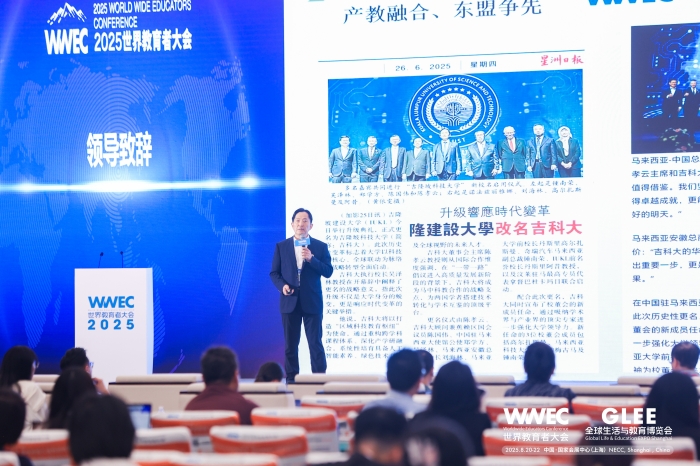 8月20日至22日,备受瞩目的第11届WWEC世界教育者大会暨GLEE全球生活与教育博览会在上海国家会展中心成功举办。本次大会以“深入实施人才战略,加快迈向教育强国”为主题,汇聚了全球的领导、专家、学者、企业家、教育者、社会精英人士,共同探寻教育赋能国家战略、助力个体成长的创新路径。在这一国际教育的璀璨舞台上,作为安徽职教出海“桥头堡”的马来西亚吉隆坡科技大学(以下简称“吉科大”)受邀组团参加本次大会。吉科大董事局主席、星青年国际集团有限公司董事长、365集团董事长陈孝云教授,作为特邀嘉宾出席大会开幕式,并在随后的第二届长三角职业教育高质量发展大会上发表主旨演讲,为大会注入了来自中国职教出海的前沿思考与力量。