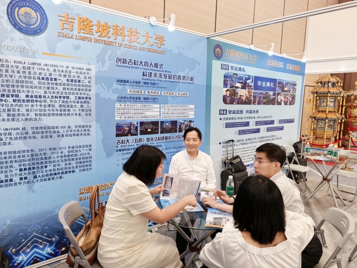 在同期举办的GLEE全球生活与教育博览会上,现场气氛热烈非凡。100多家展商齐聚一堂,展示了丰富多样的教育产品与服务资源,促进了供需双方的广泛对接。吉隆坡科技大学展厅位于现场显眼位置,布置精美、特色鲜明,一经亮相便吸引了众多目光。现场咨询者络绎不绝,国内外众多教育机构纷纷前来深度交流,充分展现了吉科大的品牌影响力和吸引力。(图/文 关云瑞 审核:郁宗菊、苏 勇)