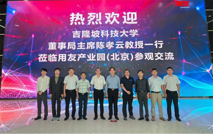 代表团参观了用友集团展馆并举行会谈。用友集团介绍了其在马来西亚及东盟的国际化布局情况及其“数智化产教融合解决方案”。陈孝云教授在交流中特别指出:“用友的生态共建思维,为高校科研成果转化提供了从实验室到产业落地的桥梁”,并表示将推动吉隆坡科技大学与用友共建二级学院或产业学院,定向培养企业数字化转型所需的复合型人才,并围绕用友集团的海外人才需求定向培养、输送高素质专业人才。