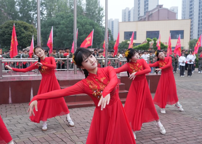 上午七时,仪式在庄严的国歌声中正式开始。英姿飒爽的国旗护卫队护送五星红旗入场,在全体师生肃穆的注视和激昂的合唱声中,鲜艳的国旗冉冉升起,迎风飘扬,点燃了现场每一个人心中的爱国热情。升旗礼毕,活动进入以“星青年”文化为核心的风采展示环节。首先,“星青年”学子带来了精彩的《五星管理》风采展示。他们队列整齐、动作划一、精神饱满,以昂扬的姿态和卓越的素养,生动展现了学院独具特色的“星青年”培养模式所取得的育人成果,体现了现代学子精于管理、严于律己的精神风貌。随后,深情而有力的朗诵《星火燎原 强国有我》震撼人心。学子们用铿锵的语调,抒发了继承革命精神、矢志为国奋斗的青春誓言,表达了“星青年”胸怀天下、勇于担当的时代责任感。