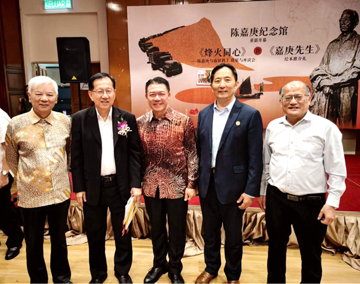 作为系列纪念活动之一,10月12日上午,陈孝云一行参观了整修两年重新开馆的马来西亚陈嘉庚纪念馆,出席了由马来西亚陈嘉庚基金会、吉隆坡暨雪兰莪中华大会堂等机构举办的《烽火同心——陈嘉庚与南侨机工》展览及《嘉庚先生》绘本推介仪式,现场聆听了马来西亚房屋及地方政府部部长、国会议员倪可敏的精彩演讲。