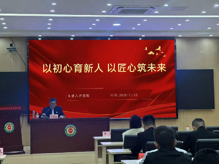 许信旺校长以《以初心育新人 以匠心筑未来》为题,为新教师讲授入职第一课。许校长强调,教师肩负“为党育人、为国育才”的使命,青年教师作为学校发展的“源头活水”,其成长速度直接关乎办学质量与核心竞争力,必须将个人成长与学校发展深度绑定。针对新教师成长,许校长提出“守初心、担使命”双重指引:要以“四有标准”筑牢教育根基,以理想信念引领学生、以道德情操树立榜样、以扎实学识深耕专业争做“双师型”教师、以仁爱之心传递教育温度;同时要聚焦“金牌教学、金牌教研、金牌协同、金牌学习”四大方向,创新教学方法、破解教研难点、深化校企合作、坚持终身学习,全力向“金牌教师”迈进。新时代的职业教育教师,不能只做 “教书匠”,更要做 “金教师”—— 有金牌的专业能力、金牌的育人水平、金牌的创新精神。