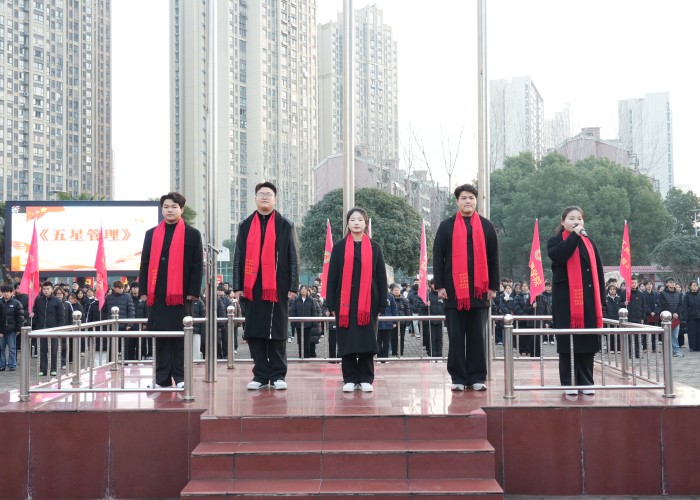 宣誓完毕后,星青年学子代表现场进行了《五星管理》素养展示。他们以整齐的队列、清晰的阐述,生动演绎了在“心态、目标、时间、行动、学习”五个维度的自我管理实践,将抽象的育人理念转化为可视的行为规范,赢得了现场师生的阵阵掌声。