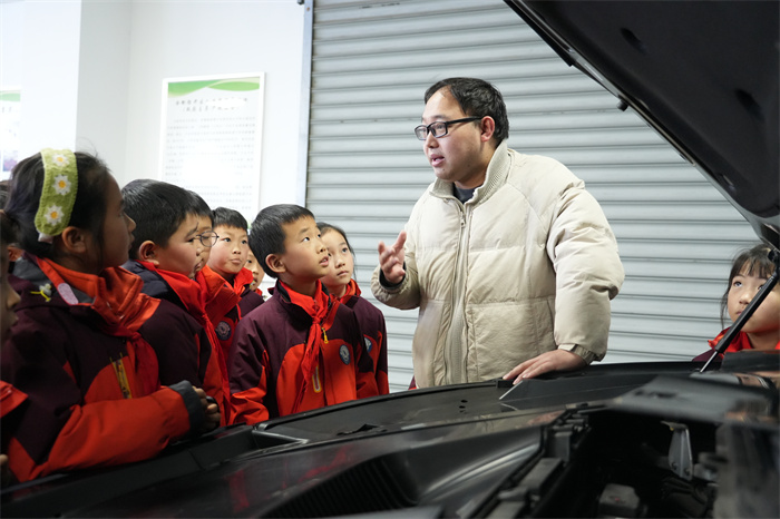 移步新能源汽车展区,经贸旅游学院教师以通俗语言讲解新能源汽车核心技术、环保优势及发展趋势,通过与传统燃油车对比普及绿色出行理念。同学们围车观察、踊跃提问,展现出强烈的求知欲。