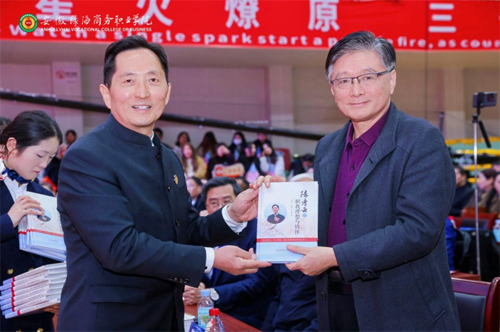 1月16日下午,学校大学生活动中心内书香弥漫、气氛热烈。《陈孝云的职教理想与情怀》新书发布会在此隆重举行。吉隆坡科技大学执行校长吴泽林、副校长苏拉娅·阿米鲁丁一行17位马来西亚特邀嘉宾,天津市人大代表、天津工业职业学院原院长孔维军,安徽水利水电职业学院原院长、安徽省职成教学会原会长李兴旺,中国水利水电出版社万水分社副总编辑陈艳蕊,肥西县政协有关领导,星青年国际集团董事长、吉隆坡科技大学董事局主席、365集团董事长陈孝云,以及学校师生及读者代表齐聚一堂,共同见证这部记录民办职业教育发展历程的重要著作正式面世。