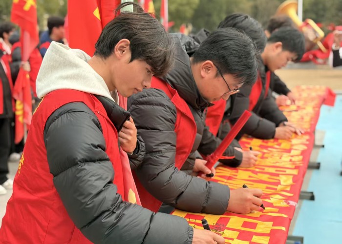 伴随着激昂的《学习雷锋好榜样》乐曲声,与会领导与师生代表们纷纷在印有活动主题的横幅上郑重签名,表达自己学习雷锋精神、投身志愿服务的坚定决心。大家表示,将以实际行动书写新时代的雷锋故事,让“奉献、友爱、互助、进步”的志愿精神在校园蔚然成风。