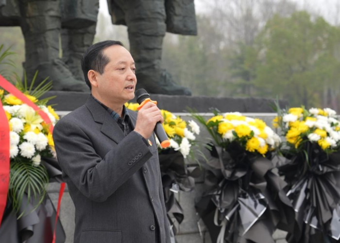 在全体人员的热烈掌声中,校党委委员、行政文化总监张义廷发表讲话。他指出,渡江战役是中国革命史上的光辉篇章,革命先烈们抛头颅、洒热血,用生命与鲜血铸就的伟大渡江精神,是中华民族弥足珍贵的精神财富,更是新时代青年砥砺前行、勇毅奋进的不竭动力。