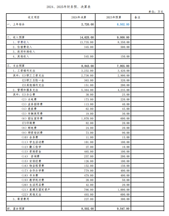 2024、2025年财务预、决算表