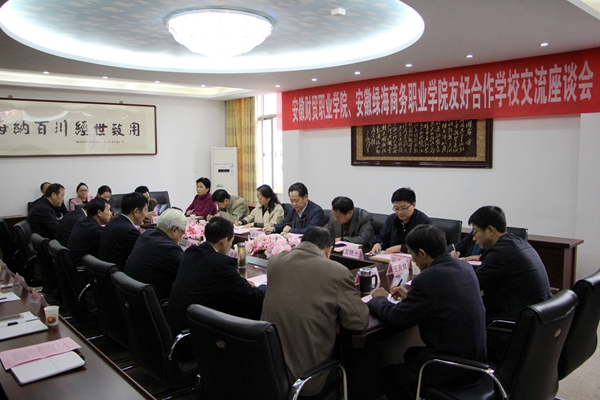 10月24日下午,365集团友好合作学校安徽财贸职业学院党委书记、院长耿金岭,党委副书记、副院长汪少清,院长助理罗虹,组织人事处、科研处、招生就业处、学生处、办公室、教务处、团委等有关负责同志来绿海学院就高职院校的教科研工作和创新创业教育等话题进行了深入交流座谈。董事长陈孝云,学院党政领导江传瑞、许崇正、陈孝江、张以亭、熊名文及相关单位负责同志参加座谈交流。