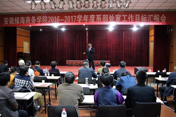 此次汇报会采取汇报交流的形式,旨在加强各单位之间的沟通和学习,推进改革和创新。会上,各单位围绕2016-2017学年度工作目标展开了详细的汇报。其中,工商管理系副主任徐国成从团队建设、教学科研、人才培养体系建设等方面系统的讲解了部门的年度工作目标,图文并茂,案例贴切;信息技术系副主任吴艺妮绘声绘色、声情并茂的汇报了部门的专业建设目标、技能竞赛目标和创新创业目标,分析问题客观准确,解释透彻;会计系副主任刘红娟从教学管理和质量控制、学生工作、安全工作、招生工作等方面阐述了部门的年度目标,条理清晰,措施可行;旅游系副主任刘婷结合系部特点,清晰的介绍了旅游系的各项工作目标,责任明确,节点清晰,具有一定的创新性。各系部处室负责人的汇报精彩纷呈,各具特色,目标明确,方案可行,将系部目标与学院目标紧密相连。