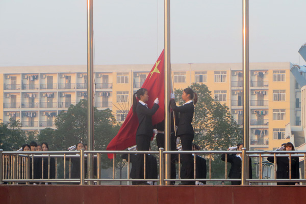 早晨6点半,负责本周升旗活动的会计系全体师生就已早早地赶到了科技楼前广场,同学们在清晨的阳光下显得精神勃勃,展现出了新一代绿海人的风采。7点整,升旗仪式准时开始。随着整齐的步伐和嘹亮的口号,英姿飒爽的巾帼卫士,护卫着鲜红的五星国旗步入广场。伴随着庄严的国歌,五星红旗冉冉升起。在场领导、老师和同学们集体行注目礼,齐唱国歌。国旗冉冉升起,全场庄严肃穆。