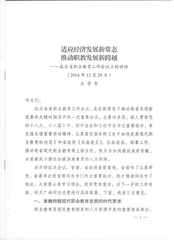 适应经济发展新常态,推动职教发展新跨越