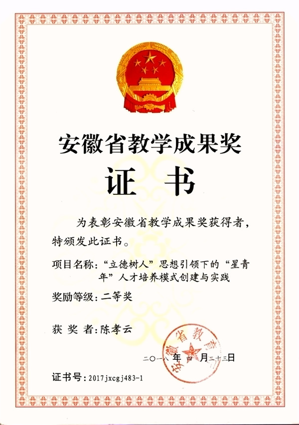 学院星青年人才培养模式获安徽省教学成果奖