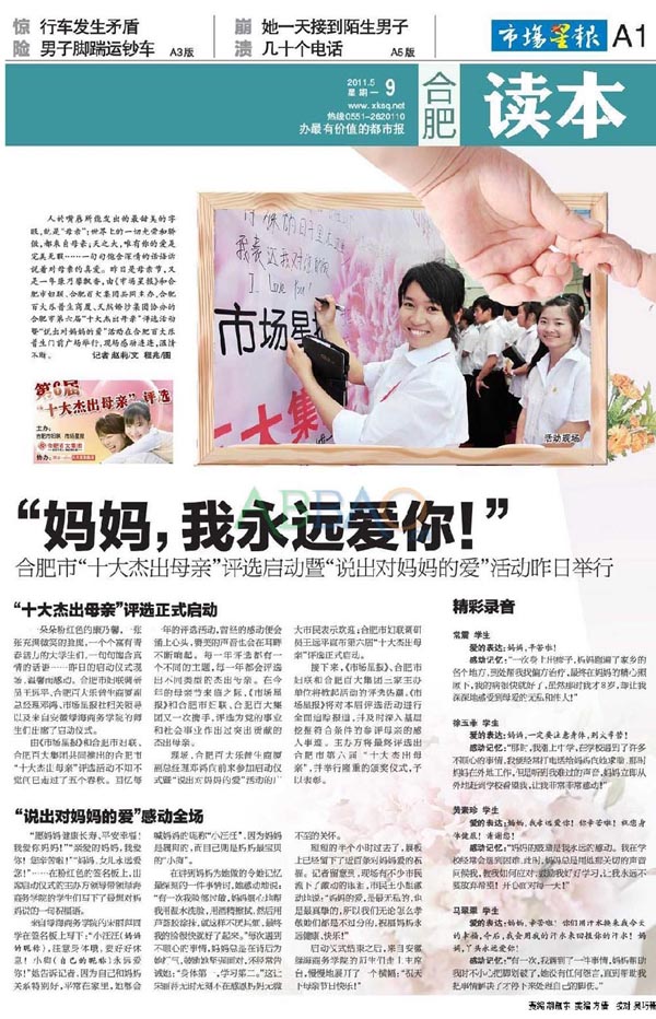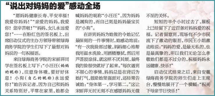 《市场星报》报道我院学子“说出对妈妈的爱”感动全场