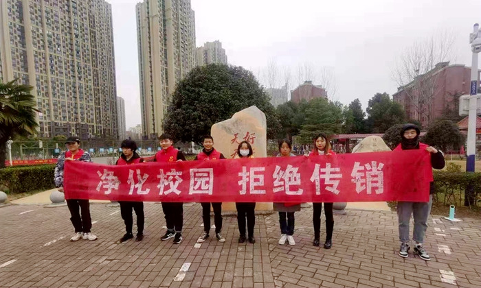 为切实保护在校学生的生命财产安全,维护校园稳定,积极引导广大在校师生对传销违法犯罪活动不参与、能识别、敢揭发,有效遏制传销等违法犯罪活动向校园渗透。自开学以来,学院保卫处、宣传部、学生处(团委)等部门联合开展“净化校园,拒绝传销”系列宣传教育活动。