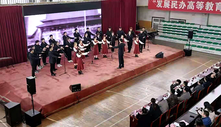 红歌代代传,祖国岁岁兴。为庆祝建党100周年,缅怀红色历史,弘扬党的优良传统,讴歌党的丰功伟绩,激发广大师生的爱国爱党热情,12月10日中午,由学院学生处、团委牵头,艺术系、信息系联合承办星青年一二三四五工程大赛之“红歌颂党恩,奋进促跨越”红歌合唱比赛在学院体育馆二楼隆重举行。学院董事长、党委书记陈孝云,常务副院长仇冬,党委副书记、纪委书记刘兴杰,党委委员、文化总监张以亭,,院长助理陈萍到场观看比赛,师生汇聚一堂,用嘹亮歌声礼赞伟大祖国,共同祝福祖国繁荣昌盛。