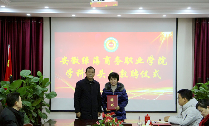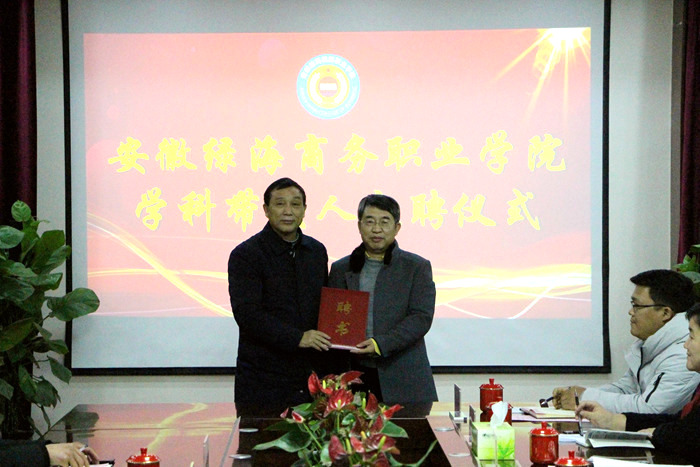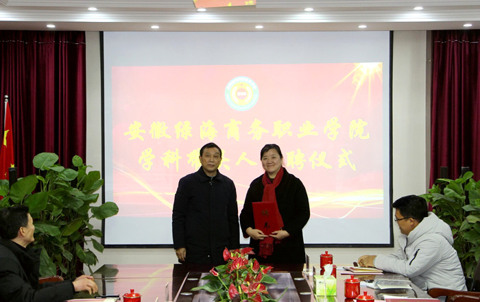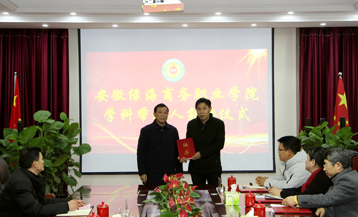 仪式上,学院敦聘汪本强教授担任工商管理系学科带头人,王乃举教授担任经贸旅游系学科带头人,顾涓涓教授担任信息技术系学科带头人,刘艳教授担任思政部学科带头人,陶宗华教授担任艺术系学科带头人。