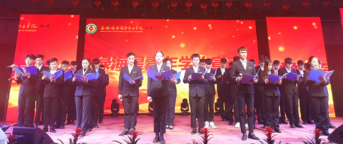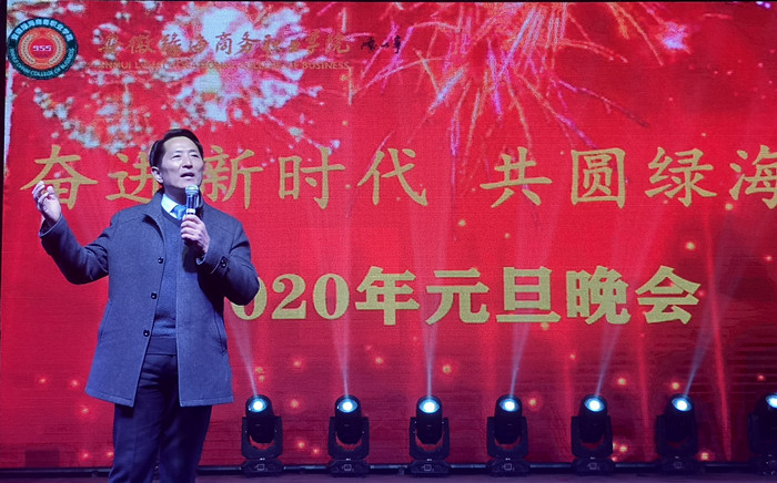 晚会进行当中,学院党委书记、星青年总培训师陈孝云向全体师生致以新年问候,并向晚会演职人员致以衷心的感谢。陈孝云表示,绿海学院最大的心愿就是“成就一学生,幸福一家庭”。即将到来的2020年,是学院加快战略转型的奋进之年,他号召全体教职员工时刻践行办学理念,从“三个多一点”入手,立足岗位创新绩,给绿海学子、给社会、给职业教育改革创新送上一份厚礼。