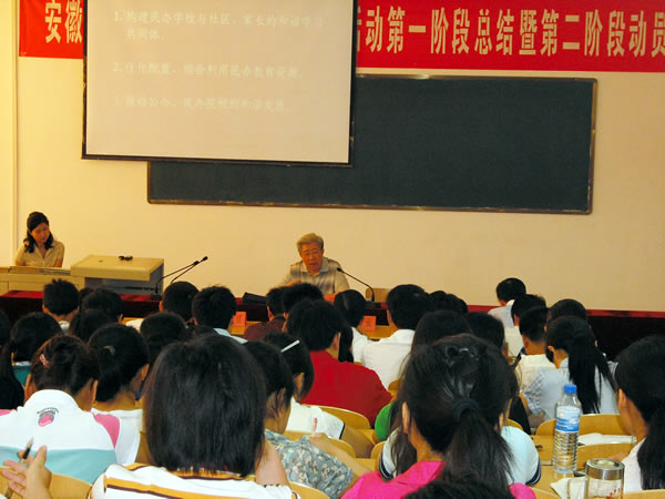 报告会上,王院长将精心准备的长达一万多字的“坚持可持续发展,建设高职强校”的理念和研究成果与大家一起分享。他分别从民办高校可持续发展的战略路径;构建民办教育风险预警机制,促进民办学校可持续发展;建设民办强校是民办教育可持续发展的方向三个方面展开,通过一些具体的事例作了深入浅出的阐释,赢得在场每一位同志的阵阵掌声。