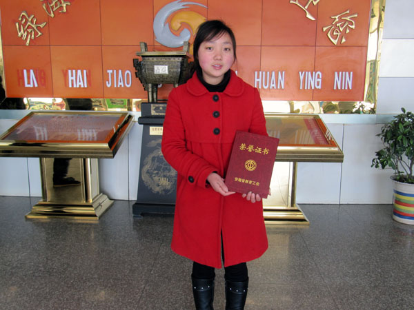 3月4日,安徽省教育工会庆祝“三八”国际妇女节暨颁奖典礼在合肥市花园宾馆隆重召开,来自全省各市教育工会女工委主任,各高校、附院女工委主任和合肥市受表彰的先进集体和先进个人近一百人出席了庆祝表彰大会。我院杨慧玲老师荣获“安徽省先进女教职工”荣誉称号。