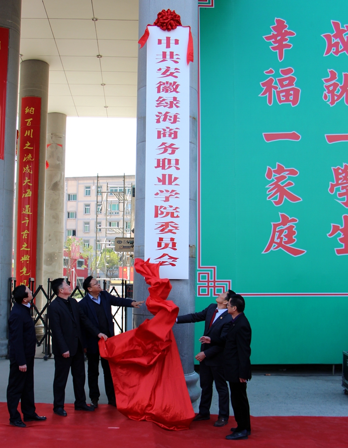 新牌正式揭牌,预示着绿海学院的建设和发展将步入新的旅程,迈上更高的台阶。全体绿海人将以习近平新时代中国特色社会主义思想、党的十九大精神和全国教育大会精神为指导,牢记初心,不忘使命,认真贯彻落实《职业教育改革实施方案》,深入推进基层组织标准化质量提升工程,加强与社区党委的合作与交流,深入开展“四联四进”工作,同心协力抓党建,抓好党建促发展,为书写好新时代绿海教育事业的新篇章、为服务地方经济社会发展而共同奋斗!(苏 勇  审核:张以亭)