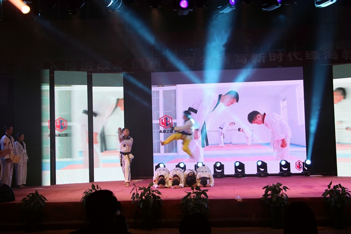 十多年来,学院确立了“成就一学生,幸福一家庭”的办学理念。把中华优秀传统文化教育和创新创业教育融入到教育教学全过程,坚持因材施教,保持个性,全面发展。07级优秀毕业生代表戈阳带来的歌曲《我们不一样》和《顺心顺意》使整场晚会达到高潮,《舞蹈串烧》让人心潮澎湃,跆拳道表演《绿海起航》飒爽身姿,让人禁不住不停叫好。整场晚会在大合唱《歌唱祖国》中落下帷幕。
