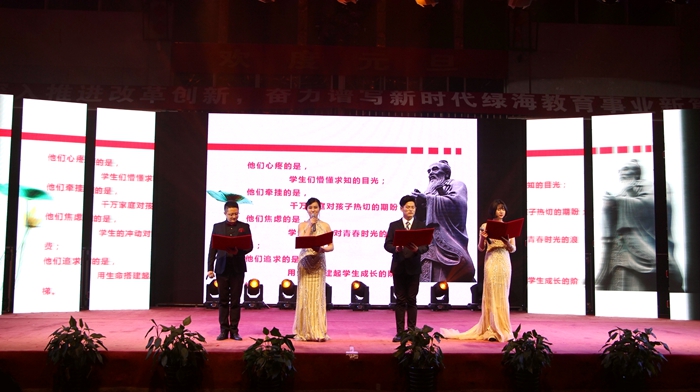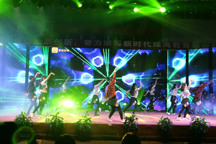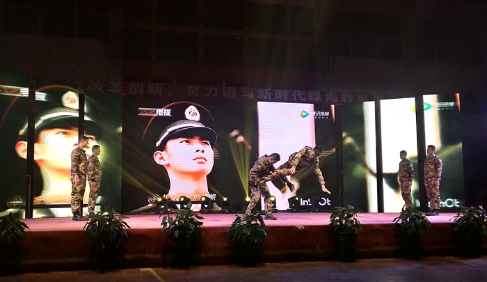 改革开放40周年标志着开启了祖国复兴新的篇章,走在特色的社会主义新时代道路上,的步伐无比坚定,一篇经典诵读《沁园春·雪》直入人心,表达了伟人的情怀和坚定信念;而由学院教职工创作并演绎的诗朗诵《致星青年》更是展示了她们对学院的星青年培养模式的肯定,更是对绿海学子的谆谆教诲。此外,歌曲《》、舞蹈《花儿为什么这样红》、《卡路里》;《军体拳》等节目轮番上演,颜值与实力并存,唯美与刚劲融合,张弛有度的节目设计,不仅让观众欣赏到精彩纷呈的视听文化盛宴,同时也展示了绿海学子积极进取、崇德向善的精神风采。