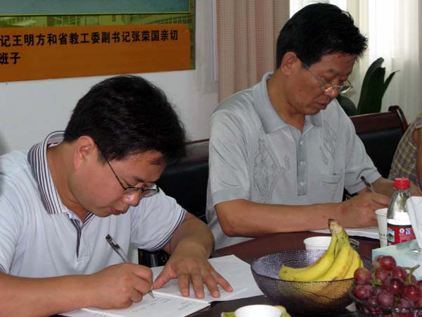 我院王端庆院长向教育厅有关领导详细汇报开学以来学院各项工作的开展状况。