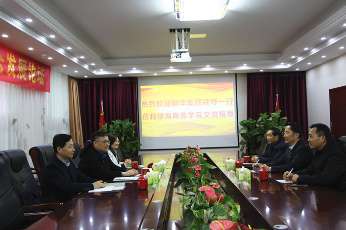 王孝武充分肯定了学院办学以来所取得的成绩。他详细介绍了新华控股集团的产业板块和管理模式,特别介绍了“新华教育 兴教报国”的办学理念、发展历程及教育品牌。他表示,新华教育秉承“贴近市场、领先行业、服务就业”的办学思路,着力培养应用型技能人才,这与绿海商务学院的人才培养目标是一致的,希望双方能进一步加强交流与合作,密切往来、优势互补、共赢发展,为职业人才培养、服务社会发展做出应用贡献。