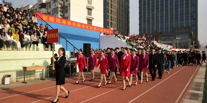 上午8时30分,张以亭宣布运动会入场式开始。随着铿锵的《运动员进行曲》响起,国旗护卫队昂首阔步走在阵列最前方,校徽方阵和彩旗方阵紧随其后。他们神采奕奕、步伐矫健,展现着绿海学子蓬勃向上、奋发进取的精神面貌。