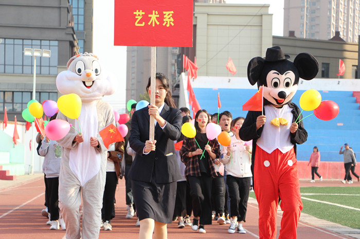 伴随着嘹亮的口号,各系方阵逐一入场,他们迈着整齐的步伐,个个精神抖擞,气宇轩昂,依次走向主席台接受检阅。各系别出心裁,各具特色,有制服秀、人偶秀、啦啦操表演等,展示了本系的特色和风貌。最后,教职工代表和裁判员方阵意气风发走来,通过大会主席台接受检阅。