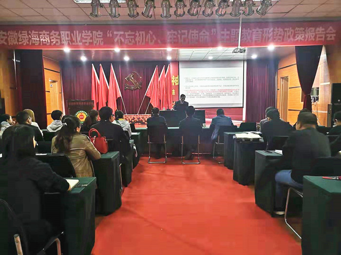 10月31日,365集团举行“不忘初心、牢记使命”主题教育形势与政策专题报告会。安徽省当代社会主义核心价值体系研究中心办公室主任、学院思政课教师侯庆双作《中美贸易战管窥》专题报告。学院董事长、党委书记陈孝云,副院长沈德斌,院长助理及全体师生党员聆听报告。报告会由党委副书记、纪委书记张以亭主持。