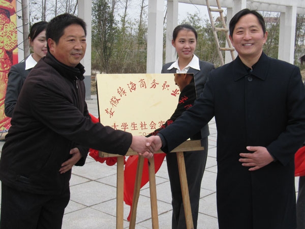 仪式上,陈孝云董事长和张秀华副书记,石秀和院长和温跃渊先生分别为我院在小岗村建立的“大学生社会实践基地”、“大学生思想政治教育基地”揭牌。