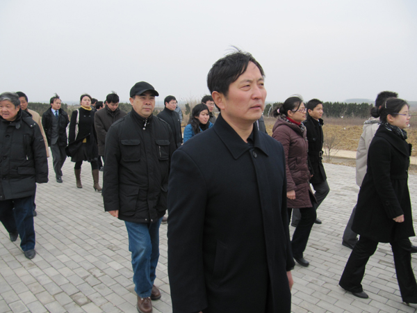 2月6日清晨,我院师生乘车从学院出发,经过高速公路上3个小时的颠簸,抵达距离合肥约200公里的凤阳县小溪河镇的农村大包干发源地小岗村。在经过沈浩同志生前亲手修建的道路上,师生们排着整齐的队伍,缓步走向沈浩同志的墓地。黑色大理石墓碑,被一片花圈和新栽植的松柏环绕……陈董事长驻足凝望,神情肃穆。