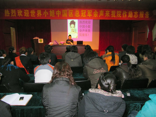 12月30日晚,第59届世界小姐区总冠军余声应邀来我院作励志报告。在整场关于“成功”的交流中,余声也将她的美丽通过言语展现得淋漓尽致。
