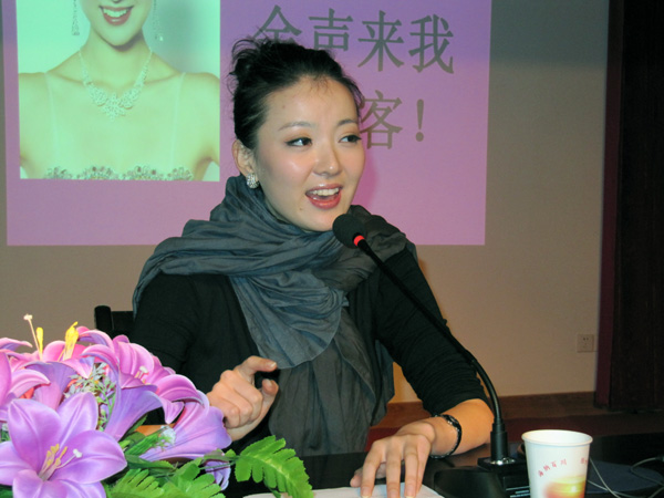 “借别人的火点不亮自己的心灵。”余声说,她今天获得的一切,都是靠自己的勤奋得来的。“腹有诗书气自华”,余声说,多年来自己一直是个踏实的孩子,大学里年年考第一名。一个人的底蕴决定事业高度,底蕴就来自于持之以恒的坚持学习和多些人生经历。她勉励大家要多读书,要坚持自己的选择。“我的成功可能是一种运气,但绝不是偶然”。