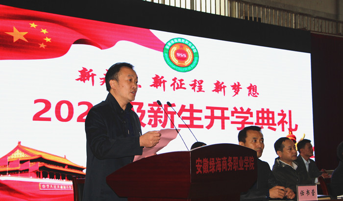 学院董事长、党委书记、星青年总培训师陈孝云发表讲话。他祝贺全体新生选择了绿海学院,把这里作为扬帆启航、展翅高飞和创造业绩的崭新起点。