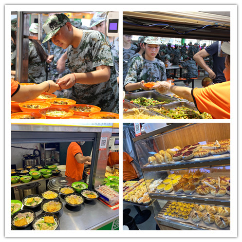学院不仅满足了1800多名集训员工训练场地,还提供了良好的住宿条件、优质的饮食服务。在优美的校园环境中,参训员工精神饱满,斗志昂扬,烈日下展示着飒爽英姿和雄健步伐;食堂内种类齐全、营养丰富的美食,为训练注入了新的力量;宿舍内整洁舒适,全天24小时热水,消除了训练一天的疲劳。