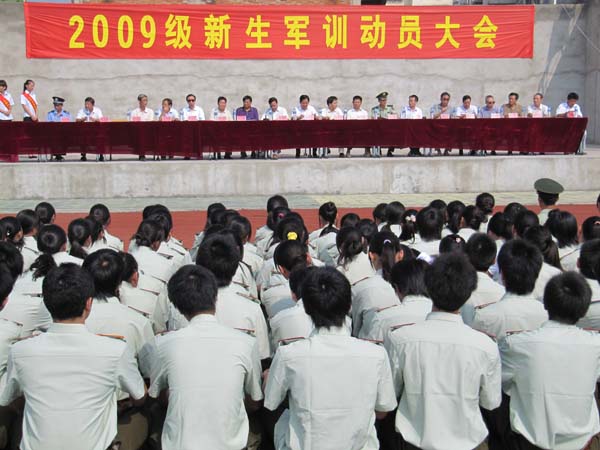 院长石秀和教授在新生军训动员会上作动员报告。他代表学院董事会、院党政领导及教职员工向来自全国各地的09级新生表示热烈的欢迎和诚挚的祝贺,向承担军训任务的全体军训教官致以崇高的敬意和衷心的感谢。