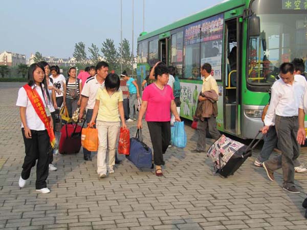 为了确保报到当日新生安全、顺利到校报到,让新生家长放心、安全离校,后勤部门除了调用我院运输车辆,还向校外借用了一批大巴,往返于火车站、汽车站与学校之间,解决了大流量人员带来的交通难题。