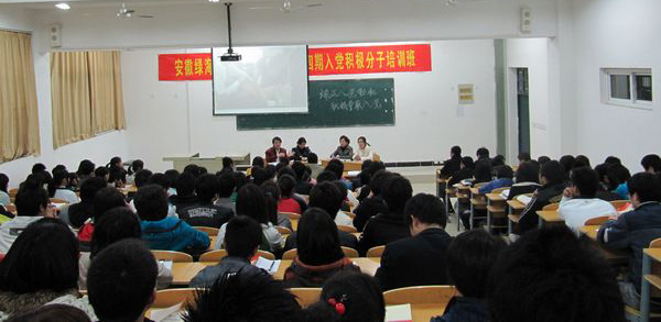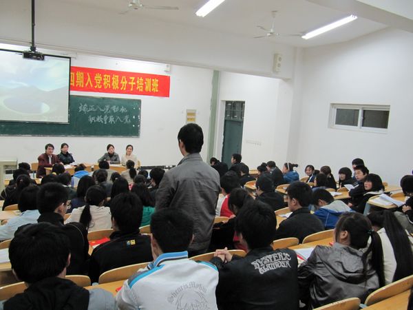 4月16日晚,我院党校第四期入党积极分子培训班首次采用访谈形式上课,受到广大学员的欢迎。当晚,党校邀请了院党总支组织委员、党办秘书储汉民老师,团委副书记孙业萍老师,首届党校优秀学员、院首批学生创业基金获得者、雄鹰实践班先进个人赵飞,院首届雄鹰实践班先进个人、大三学生周成玉参加了访谈,并与广大党校学员进行交流,取得了较好效果。