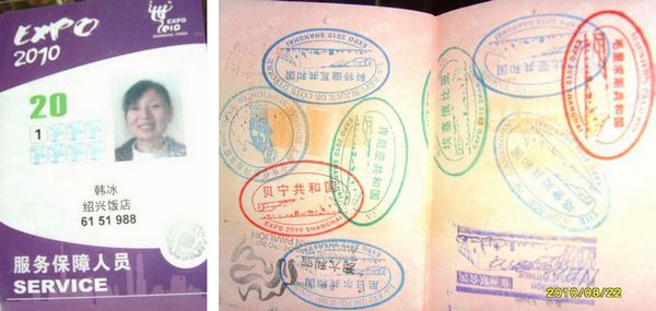 我院实习生世博园工作证和世博护照