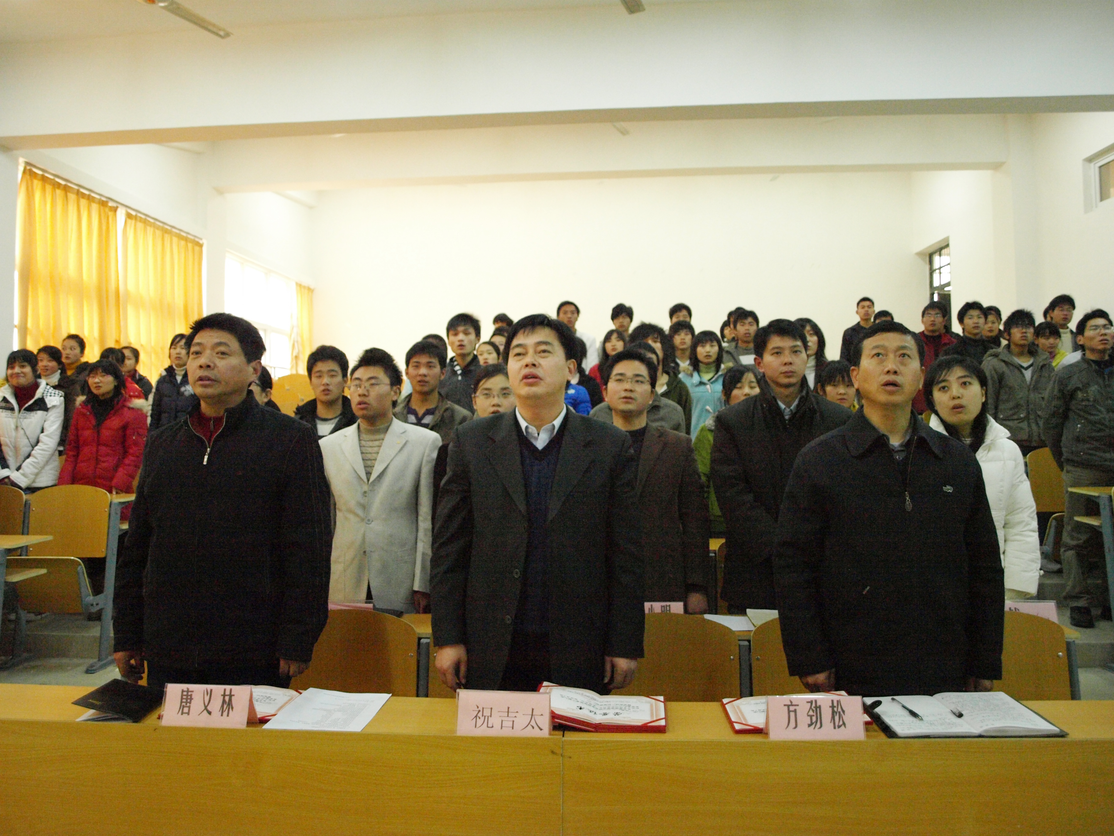 本网讯(党群办)2008年12月19日下午,我院党校第一期入党积极分子培训班结业典礼在第二教学楼第五阶梯教室隆重举行。省政府派驻我院督导专员、院党支部书记、党校校长祝吉太同志,院长助理、学生处处长方劲松同志,学生处副处长、团委负责人唐义林同志,院党支部委员、董办秘书钱冬同志,院党支部委员、教务处科长吴昊同志,团委副书记孙业萍同志、朱小明同志,管理系团总支书记辛敏同志、经贸系团总支副书记兰立刚同志出席了结业典礼。典礼由院党群办秘书、党校办公室主任储汉民同志主持。