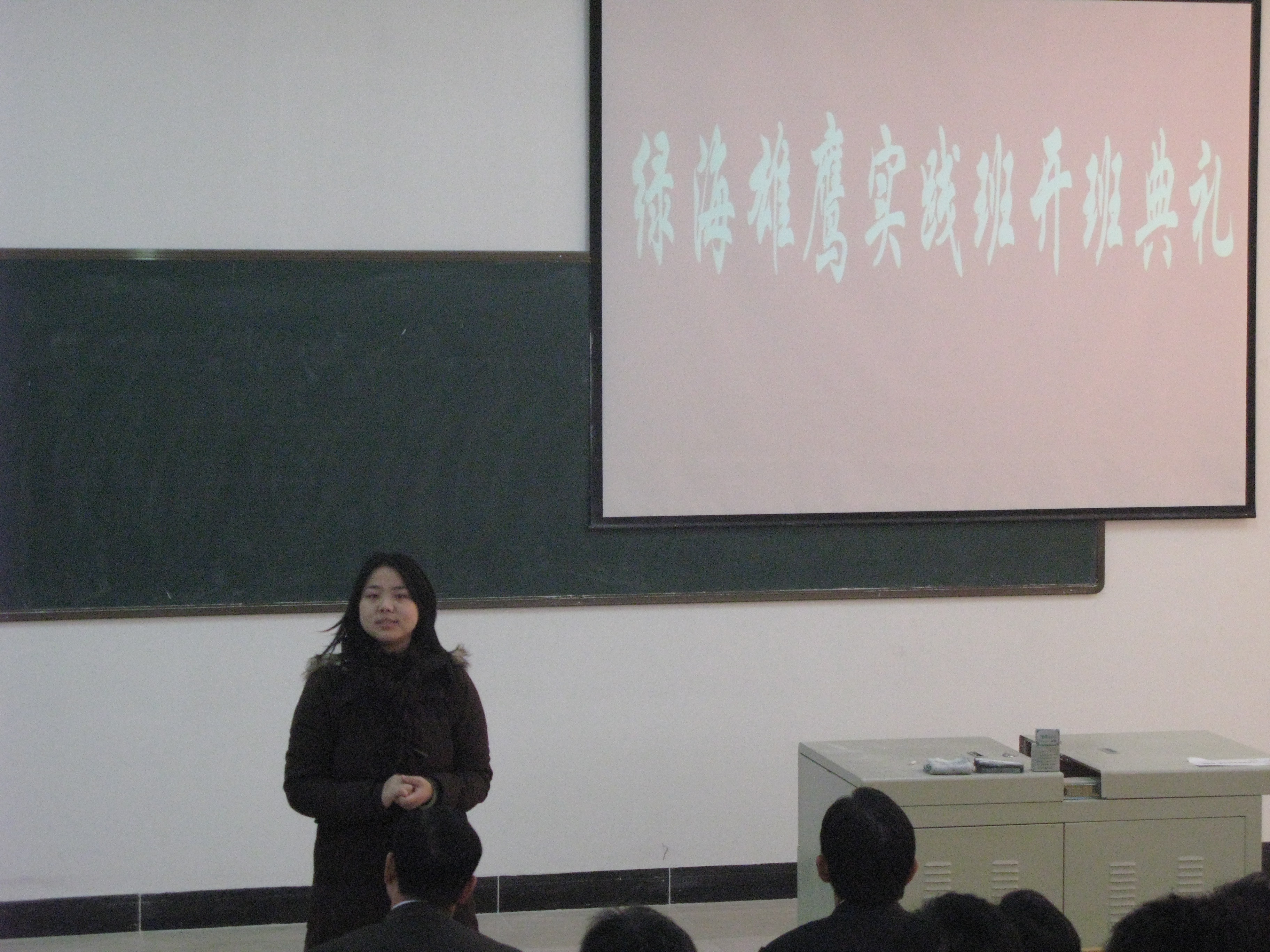 经过近半个月的精心筹划和多方面协调组织,绿海雄鹰实践班于11月30日正式开班。学院陈董事长、学生处方处长、宣传科彭科长以及几位实践班指导老师应邀出席了此次开班典礼。开班典礼由方处长主持。
