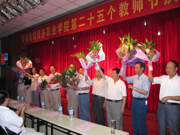 教龄超过25年的教师接受大家饱含敬意的鲜花